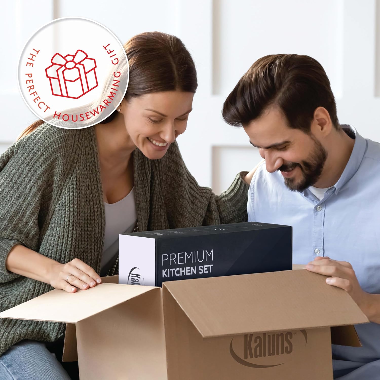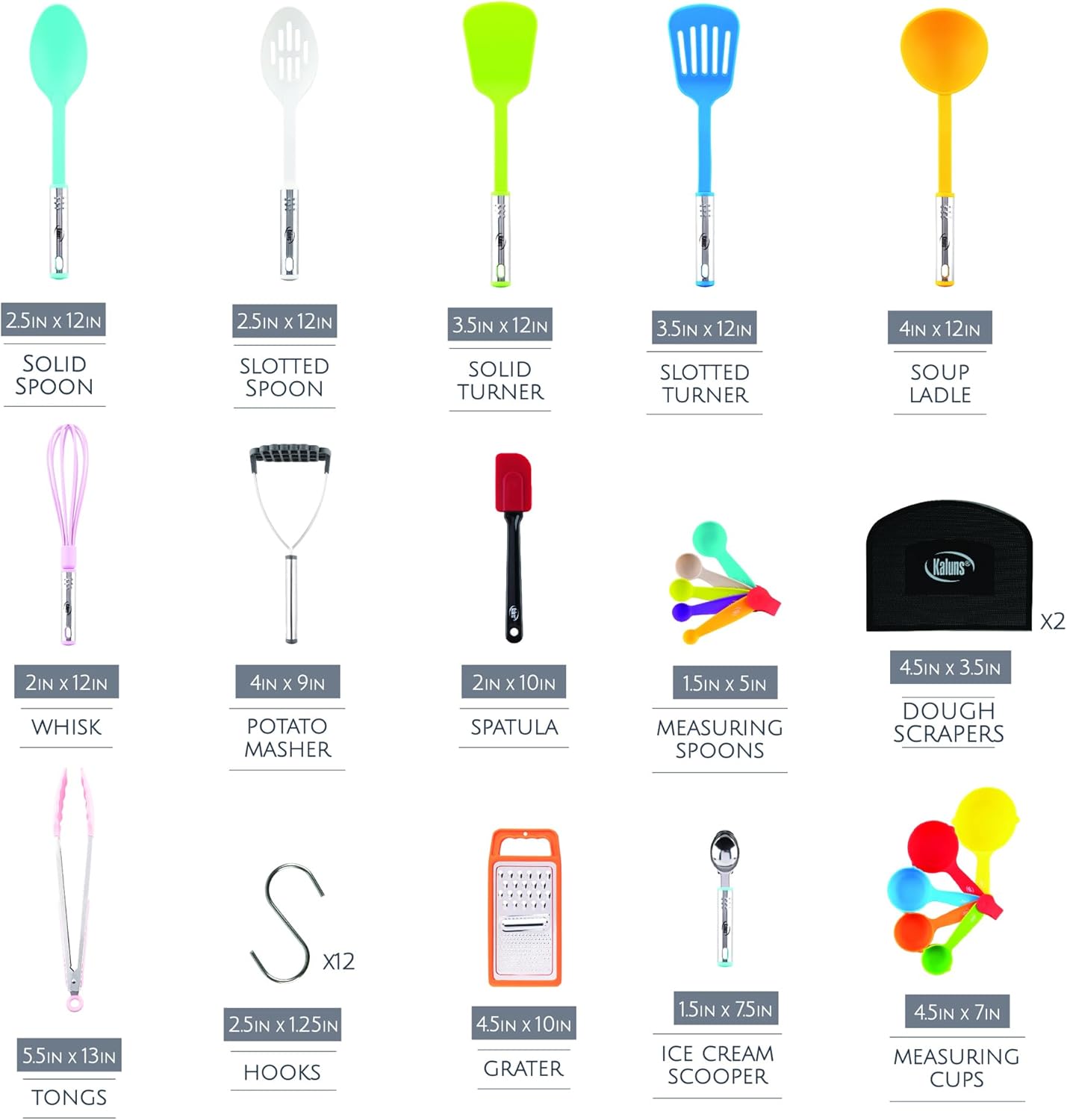Our 35-piece Nylon and Stainless Steel Kitchen Utensil Set have everything you need for a perfect cooking experience! Kaluns kitchen gadgets and accessories are made of a combination of nylon and stainless steel to ensure no scratching or sticking.