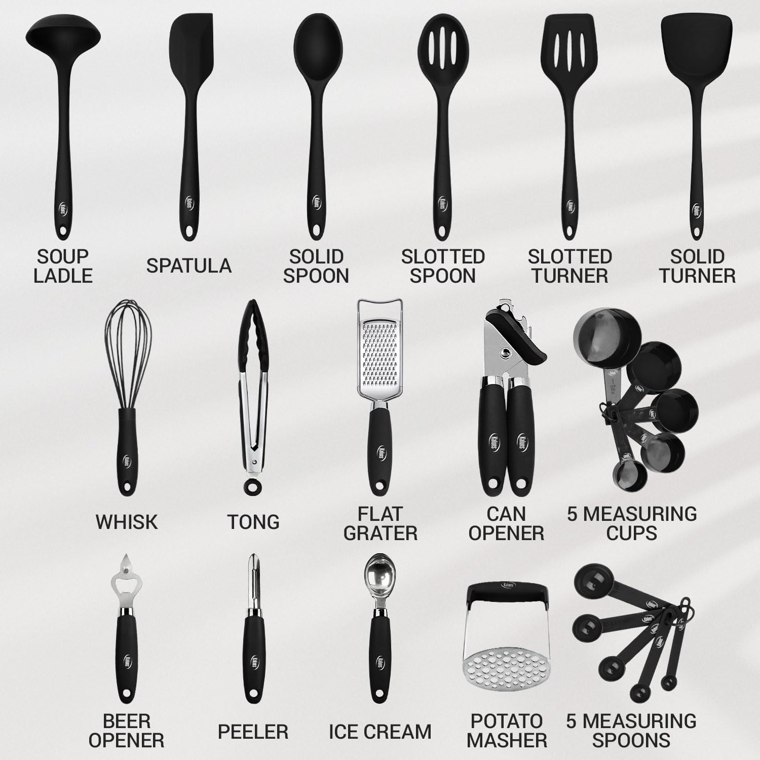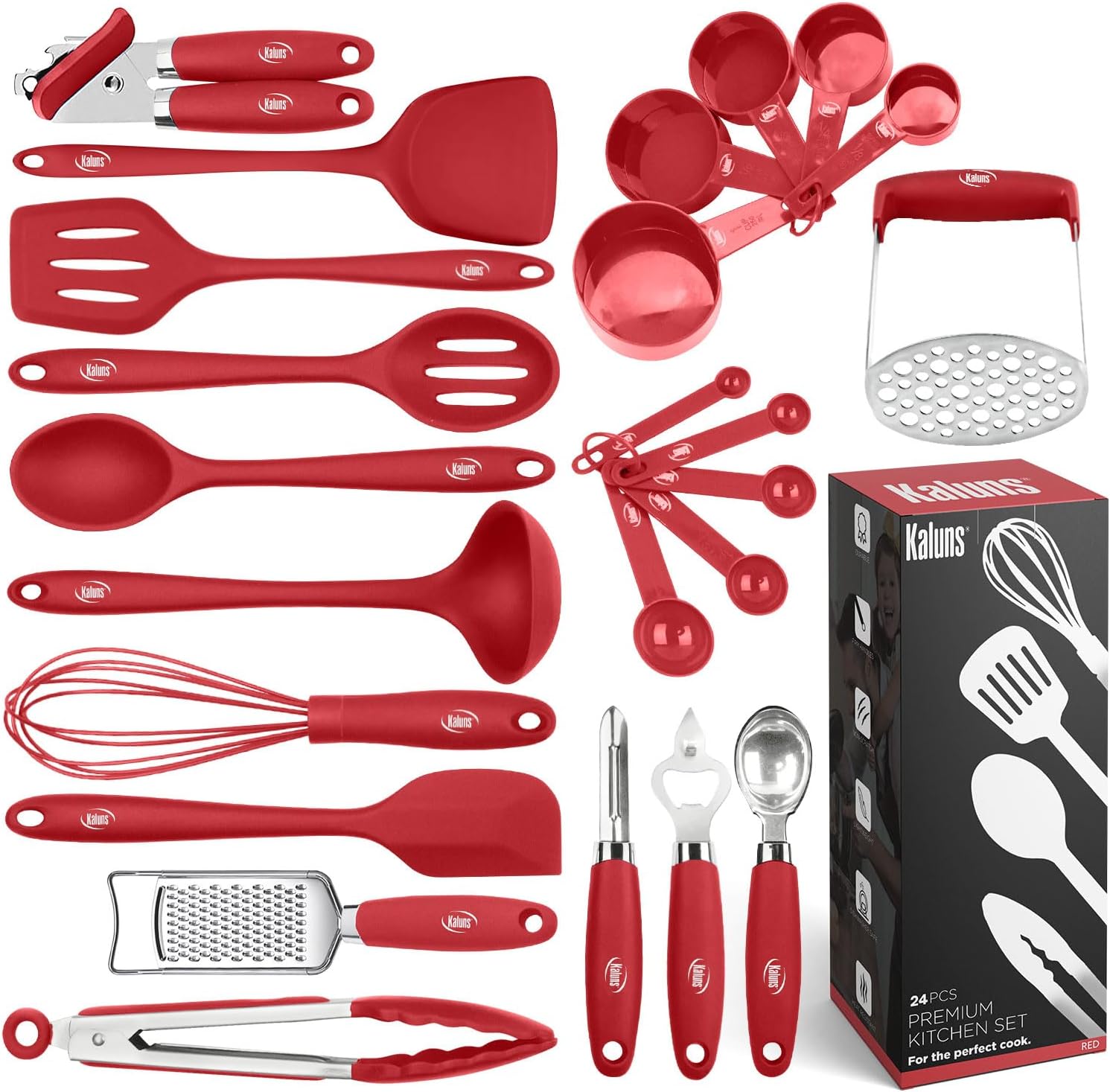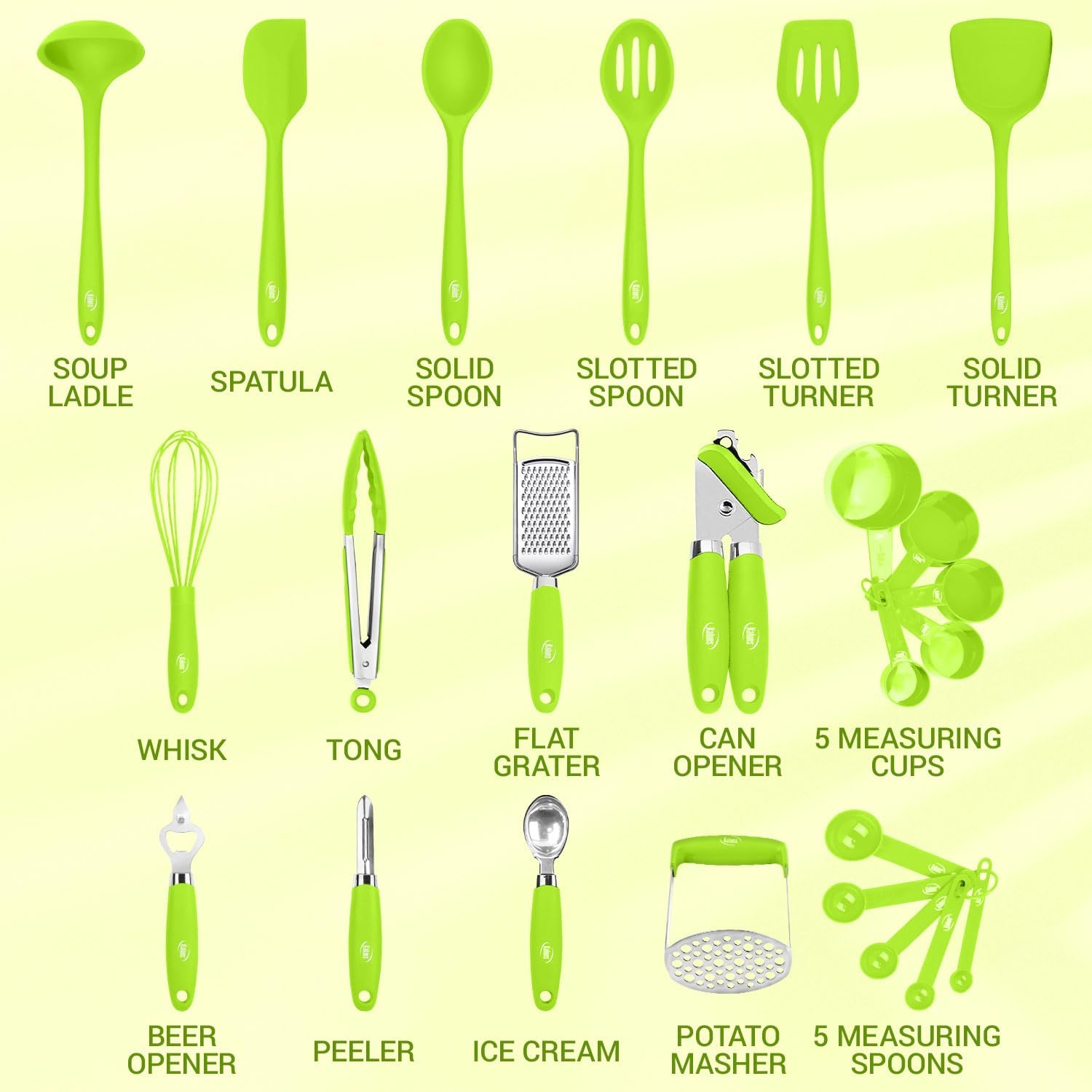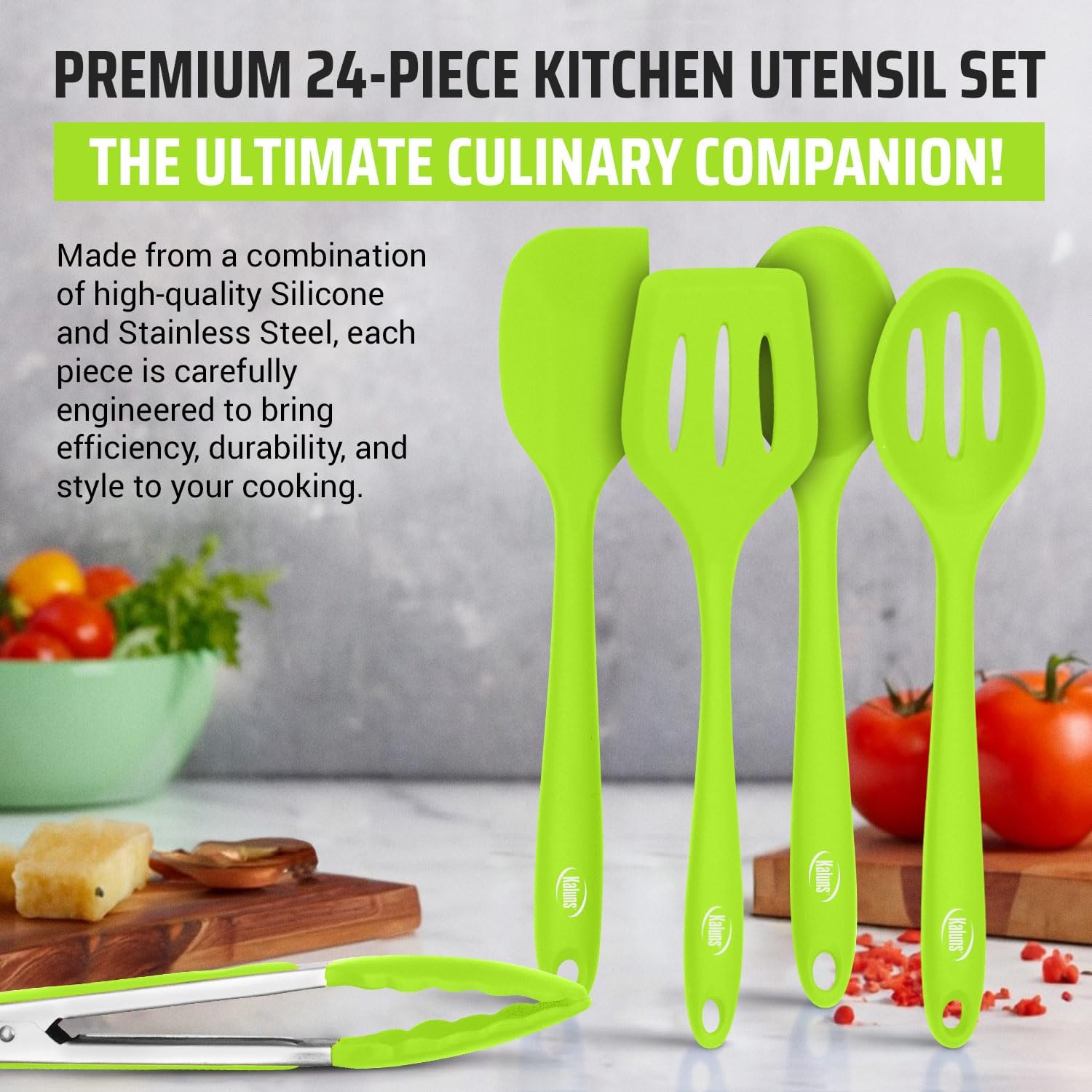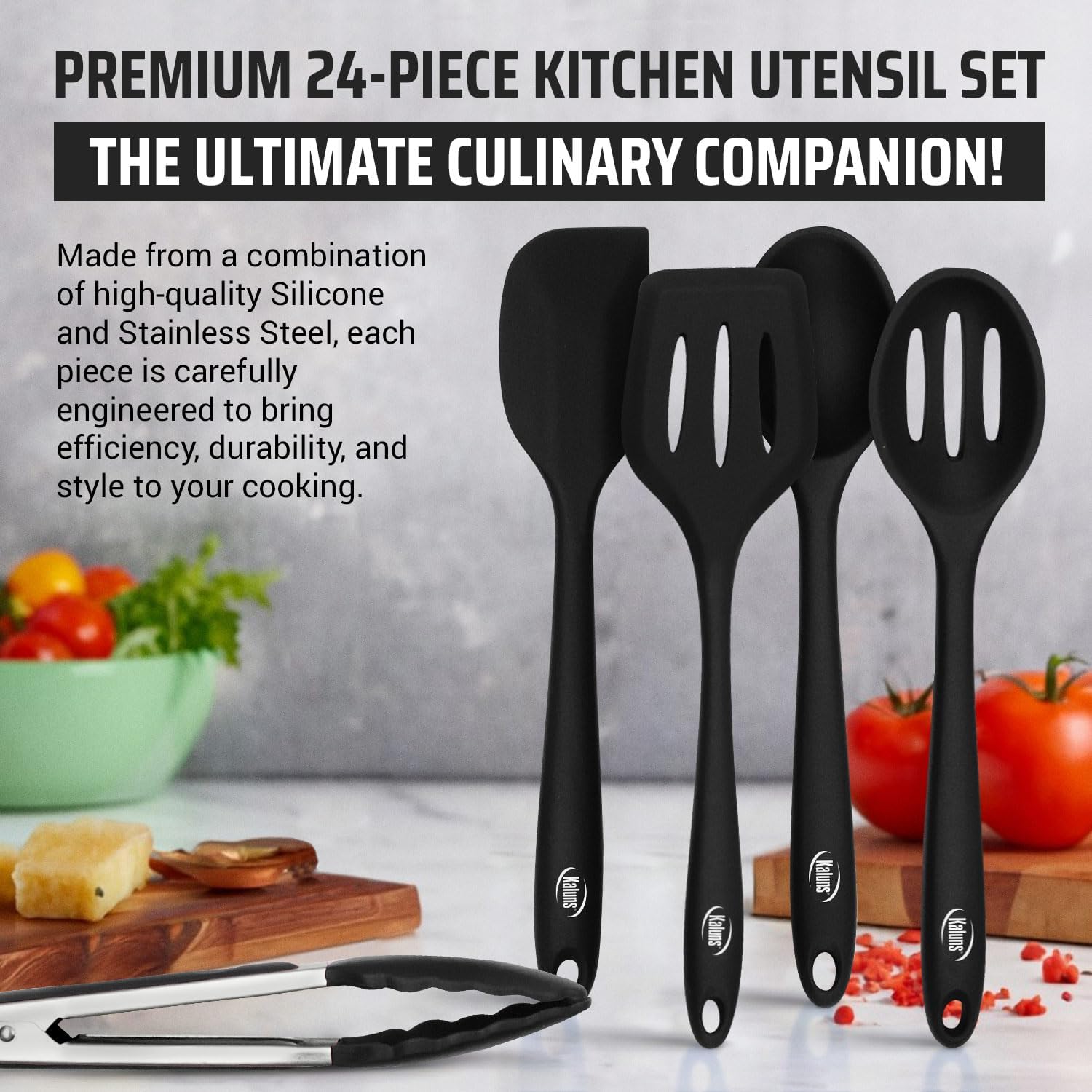 With our premium 24-piece Silicone utensil set, you have everything at hand for cooking, no matter what dish you are planning to make. It features the most extensive and exclusive selection of cooking utensils currently on the market.