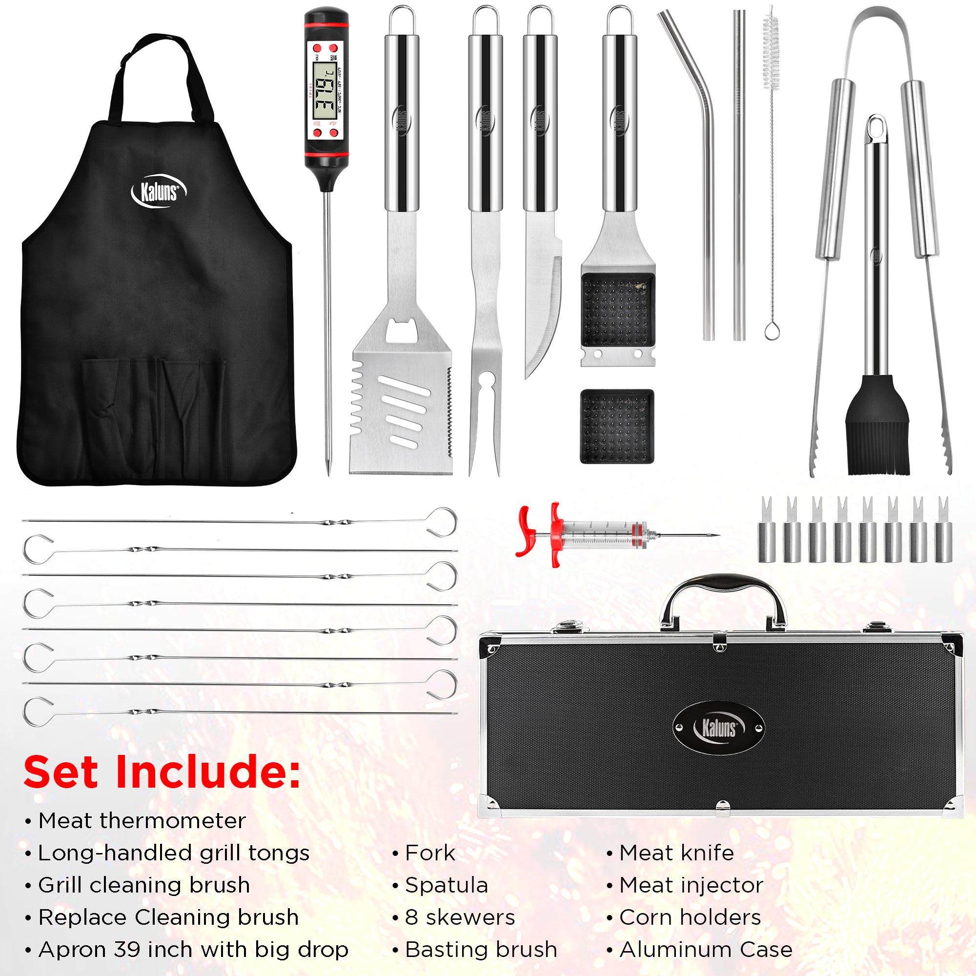 This grilling arsenal, forged from heavy-duty stainless steel, transforms you into a backyard BBQ legend