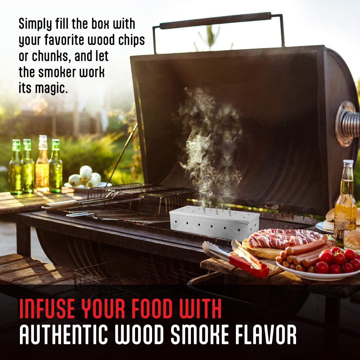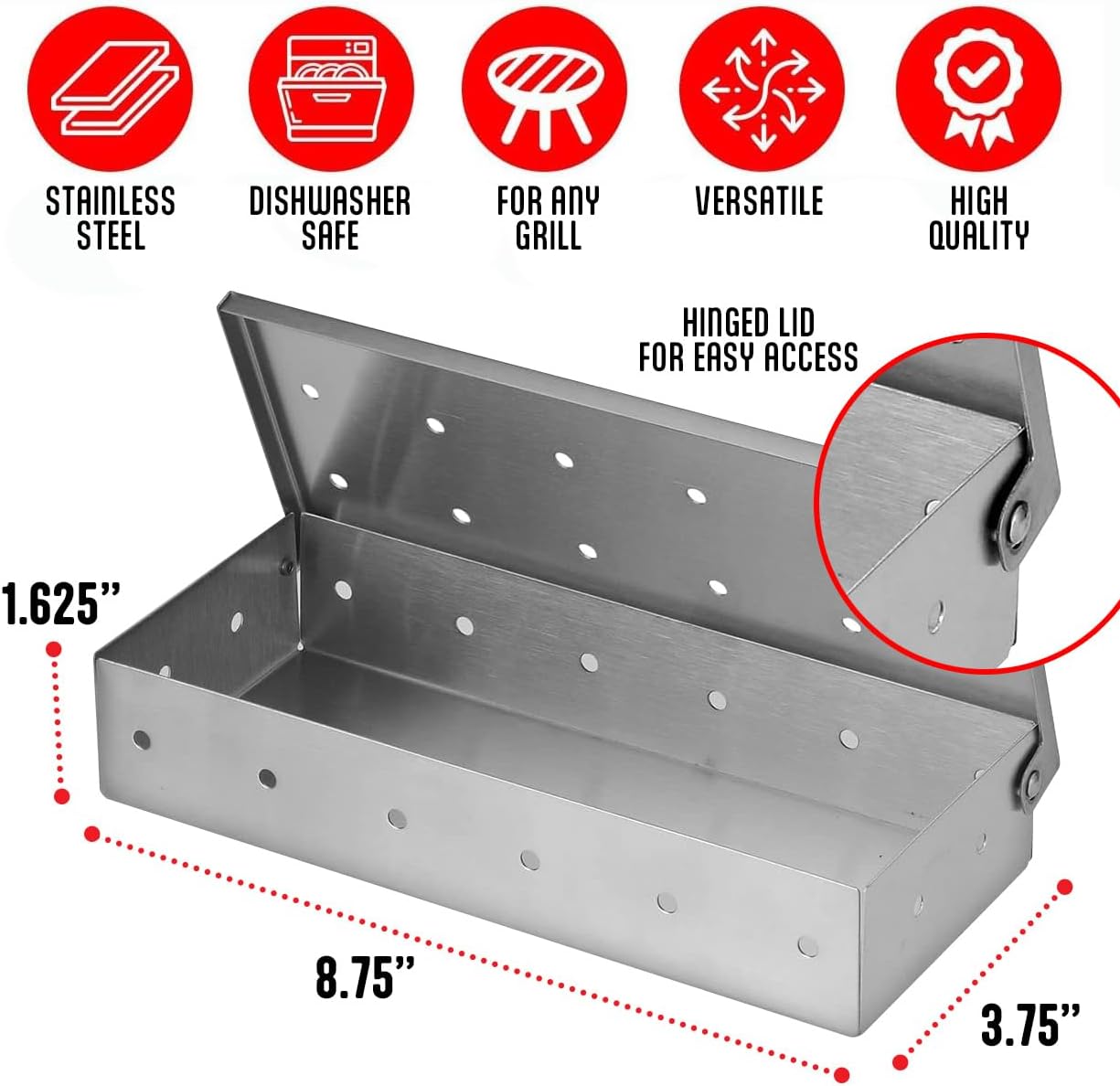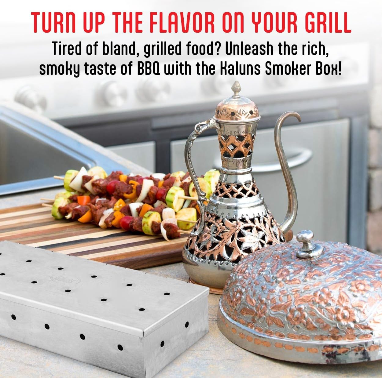 Choose Kaluns Smoker Box for scrumptious Smokey flavors. Add delicious smokey flavor to your favorite piece of meat. Position our heavy-duty smoker box right underneath the grill grates for best results!