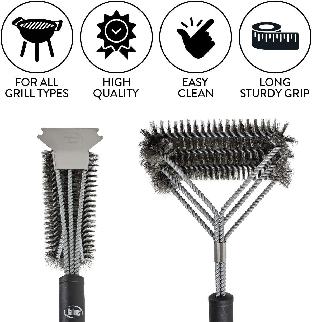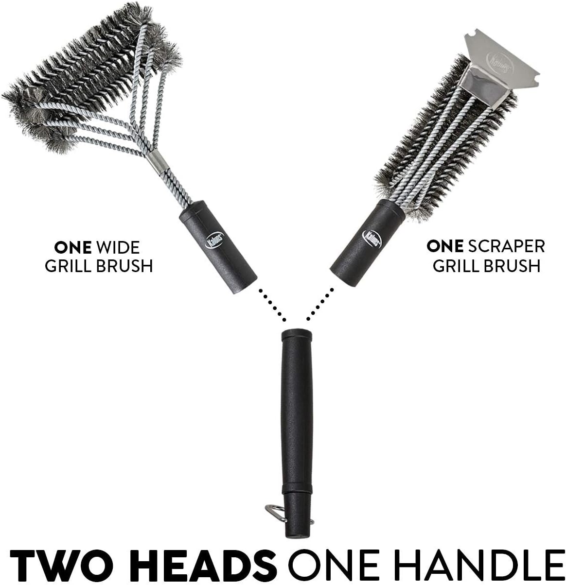 Kaluns Grill Brush Set is a 2 in 1 deal that offers two high-quality brush heads and one detachable 18" long handle. Designed with the ultimate materials, our brush will remove the toughest pieces of residue and keep your grill looking tidy and new.